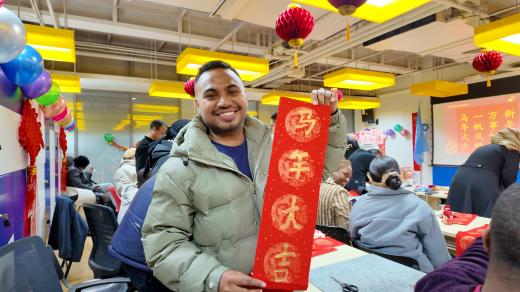 The gala featured a diverse lineup of immersive cultural experiences, captivating performances, and an exciting lucky draw, offering students an up-close encounter with the unique charm of Chinese New Year traditions. At the "Ink and Blessings" calligraphy station, students joined hands to write Spring Festival couplets. For many international participants, it was their first time holding a Chinese writing brush—though their strokes were a touch unrefined, they focused intently, savoring both the artistic elegance of Chinese calligraphy and the auspicious cultural meanings embedded in the couplets. The subsequent showcase brought together Chinese and international performers in a dazzling mix of acts, drawing waves of applause and filling the venue with cheerful laughter. The event culminated in the lucky draw, which sent the festive excitement to its peak.